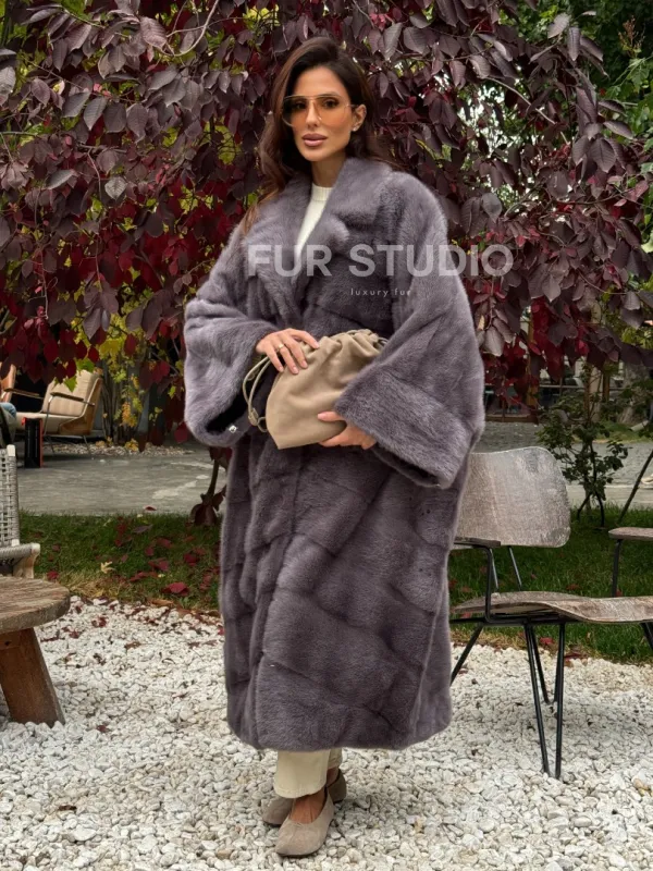 Мех данной шубы аукционная норка , цвет серый. Предлагается в размерах от oversize (42 до 68). Длина модели 120-125 см, что выгодно подчеркивает фигуру девушек. Эта модель идеально подойдет для девушек и женщин, предпочитающих роскошные натуральные меха.